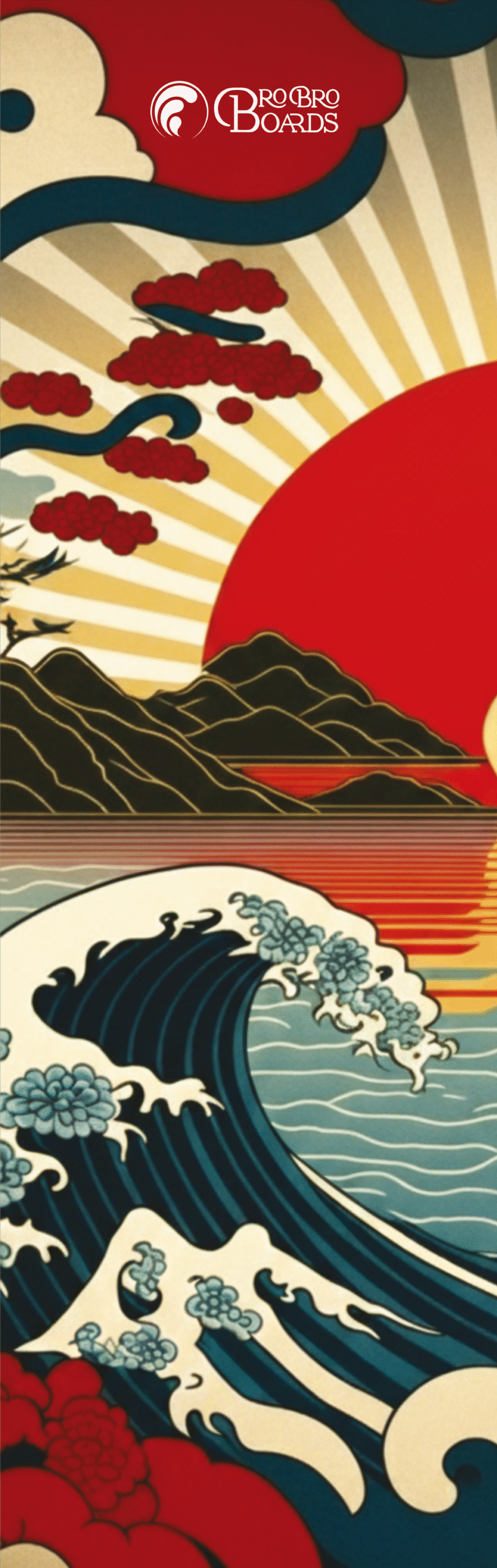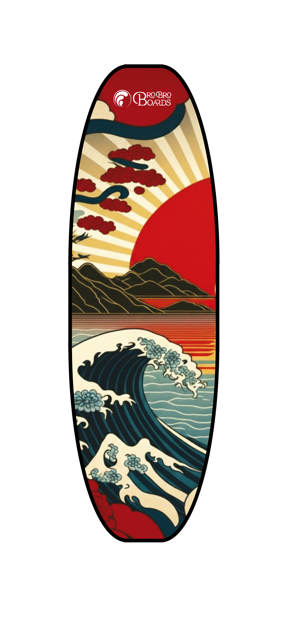Japanese Wave Sunset Flowboard. Carbon Fiber Construction, Fabric Inlay Graphic.
